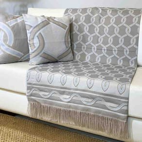 Tecido premium: a manta e as capas das almofadas são confeccionadas em tecido linho fio tinto (53% poliéster e 47% algodão – 389g/m), proporcionando um toque sofisticado e resistente; Enchimento macio: as almofadas possuem 300g de fibra 100% poliéster siliconizada, oferecendo volume e conforto; Refil de qualidade: feito em TNT 100% polipropileno, garantindo durabilidade e estrutura às almofadas; Acabamento refinado: as capas das almofadas possuem fechamento em zíper invisível, facilitando a remoção e a limpeza.