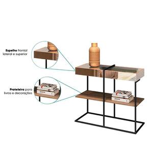 Se você está à procura de um produto extremamente requintado e que também pode ser utilizado em diversos ambientes, o Aparador Aurora é perfeito para você, e pode ter a certeza que deixará o ambiente escolhido lindo, possui duas prateleiras com a estrutura em BP de 15mm que oferece ao produto mais resistência à umidade, riscos, mofo e bactéria, viabilizando assim valores mais naturais que similiarizam aos desenhos de madeiras naturais, pés estruturais em metal antioxidantes com pintura eletroestática. Além de todas estas vantagens, este produto possui espelhos em todos os lados superiores e ainda no tampo. Toda mistura de materiais abre um mundo diferente de conceitos no que se refere a Design, e aqui está um produto que na sua criação foi pensado em você, no moderno, no atual, no conceito industrial de ser, na visão de que não se pode privar a criatividade de quem quer fazer um belo ambiente.
