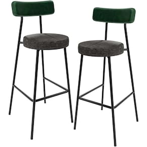 Kit 02 Banquetas Alta Bar Cozinha Sala De Jantar Milão L02 Facto Verde Linho Chumbo - Lyam Decor