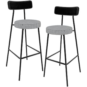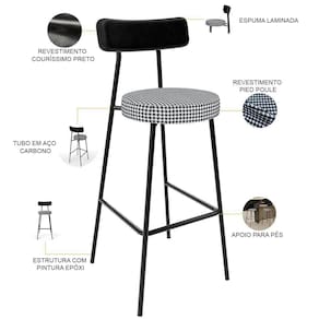Amplamente moderna, dispondo de muito realce e design singular, o Kit 02 Banquetas Alta Cozinha Sala De Jantar Aço Milão L02 Couríssimo Preto Pied Poule - Lyam Decor vem com a personalidade e elegância que sua decoração merece! Estruturada em aço carbono, contrasta lindamente com o encosto e assento estofados, cabe mencionar ainda o revestimento do seu encosto em Couríssimo e do assento em Pied Poule, é confeccionada por materiais de excelente qualidade, extremamente resistentes e aconchegantes.