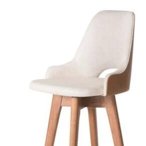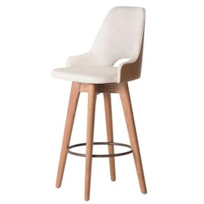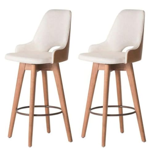 Kit 02 Banquetas Alta Giratória Com Encosto Lary Para Cozinha Composê Sintético Nozes E Linho Bege - Aurora Line - Branco