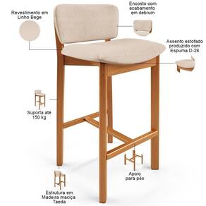 Model: Banqueta Dara | Diâmetro: na | OriginState: PR | ProductInstructions: Produto para uso residencial em ambiente interno, não devendo ficar exposto diretamente ao sol, calo | SizeDescription: Altura: 83cm x Largura: 47cm x Profundidade: 47cm | Peso: 20 kg | Cor: Bege | Material: Madeira e Espuma | ProductWidth: 47 cm | SupplierSimpleName: Kit 02 Banquetas Alta Para Cozinha Sala de Jantar Bar Dara L02 Linho Bege - Lyam Decor | Quantidade de Caixas de embalagem: 1 | Material do estofamento: Linho | É empilhável: Não | Profundidade do assento: 37 cm | Com rodas: Não | É dobrável: Não | Cor do assento: Bege | Largura da cadeira: 47 cm | OriginCountry: | ProductContents: 02 Banquetas | Estilo: Clássico | Tipo de produto: Banqueta | Com estofado: Sim | Peso máximo suportado: 150 Kg | Profundidade da cadeira: 47 cm | Largura do assento: 45 cm | ProductWeight: 20 kg | ProductWarranty: 90 dias após o do produto | Com espaço de armazenamento: Não | Com apoio de braços: Não | É cadeira de balanço: Não | Cor da estrutura da cadeira: Castanho | Cor do estofamento: Bege | Espessura do assento: na | Altura do assento a partir do solo: 74 cm | MaterialFamily: Madeira e Espuma | Color: Bege | ProductHeight: 83 cm | ProductLength: 47 cm | Largura: 47 cm | Requer montagem: Não | Fabricante: Lyam Decor | Desenho do tecido: Liso | Altura da cadeira: 83 cm
