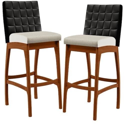 Entregando muita excelência, o Kit 02 Banquetas Altas Sala De Jantar Fixa Mila B04 Couríssimo Preto Linho Champagne - Lyam Decor é o complemento que faltava para deixar sua casa ainda mais extraordinária. Seu encosto com costura em padrão quadriculado e assento estofados, centralizam em si uma graciosidade estonteante, sem perder todo o conforto. A estrutura em madeira, na cor nozes, também é digna de notoriedade, por imprimir bastante personalidade a sua decoração. Vale ressaltar ainda, o apoio para os pés que garante maior segurança à banqueta.
