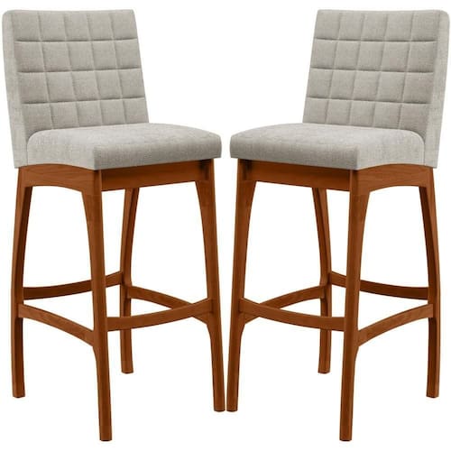 ndo muita excelência, o Kit 02 Banquetas Alta Para Cozinha Sala De Jantar Fixa Mila B04 Bouclê Creme - Lyam Decor é o complemento que faltava para deixar sua casa ainda mais extraordinária. Seu encosto com costura em padrão quadriculado e assento estofados, centralizam em si uma graciosidade estonteante, sem perder todo o conforto, sendo revestidos pelo riquíssimo tecido em bouclê que por si só já é um espetáculo. A estrutura em madeira, na cor nozes, também é digna de notoriedade, por imprimir bastante personalidade a sua decoração. Vale ressaltar ainda, o apoio para os pés que garante maior à mesma.