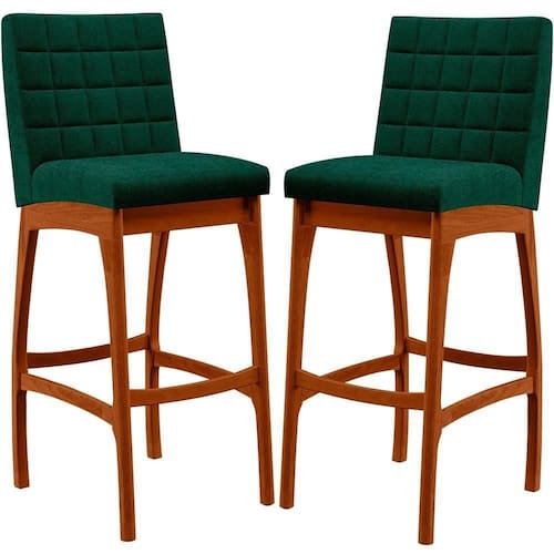 ndo muita excelência, o Kit 02 Banquetas Altas Para Cozinha Sala De Jantar Fixa Mila B04 Bouclê Verde - Lyam Decor é o complemento que faltava para deixar sua casa ainda mais extraordinária. Seu encosto com costura em padrão quadriculado e assento estofados, centralizam em si uma graciosidade estonteante, sem perder todo o conforto, sendo revestidos pelo riquíssimo tecido em bouclê que por si só já é um espetáculo. A estrutura em madeira, na cor nozes, também é digna de notoriedade, por imprimir bastante personalidade a sua decoração. Vale ressaltar ainda, o apoio para os pés que garante maior à banqueta.