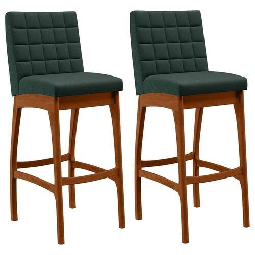 ndo muita excelência, o Kit 02 Banquetas Altas Para Cozinha Sala de Jantar Fixa Mila B04 Linho Verde Musgo - Lyam Decor é o complemento que faltava para deixar sua casa ainda mais extraordinária. Seu encosto com costura em padrão quadriculado e assento estofados, centralizam em si uma graciosidade estonteante, sem perder todo o seu conforto. A estrutura em madeira, na cor nozes, também é digna de notoriedade, por imprimir bastante personalidade a sua decoração. Vale ressaltar ainda, o apoio para os pés que garante maior segurança à mesma.