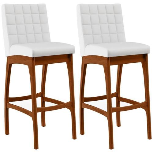 ndo muita excelência, o Kit 02 Banquetas Altas Para Cozinha Sala de Jantar Fixa Mila B04 Facto Branco Fosco - Lyam Decor é o complemento que faltava para deixar sua casa ainda mais extraordinária. Seu encosto com costura em padrão quadriculado e assento estofados, centralizam em si uma graciosidade estonteante, sem perder todo o seu conforto. A estrutura em madeira, na cor nozes, também é digna de notoriedade, por imprimir bastante personalidade a sua decoração. Vale ressaltar ainda, o apoio para os pés que garante maior à mesma.