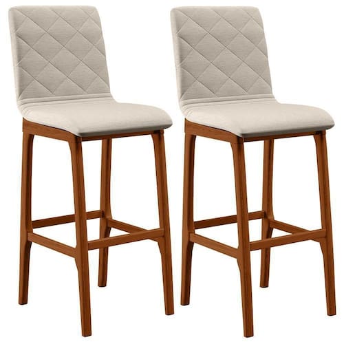 O complemento perfeito para o seu ambiente existe e está aqui! O Kit 02 Banquetas Altas Para Cozinha Sala de Jantar Fixa Zoe B04 Linho Cru - Lyam Decor vai ampliar totalmente a maneira como você compunha sua decoração, numa pegada clássica, com belíssima estrutura em madeira, na cor nozes, possui assento e encosto estofados super confortáveis e convidativos, além do apoio para os pés que garante maior segurança.