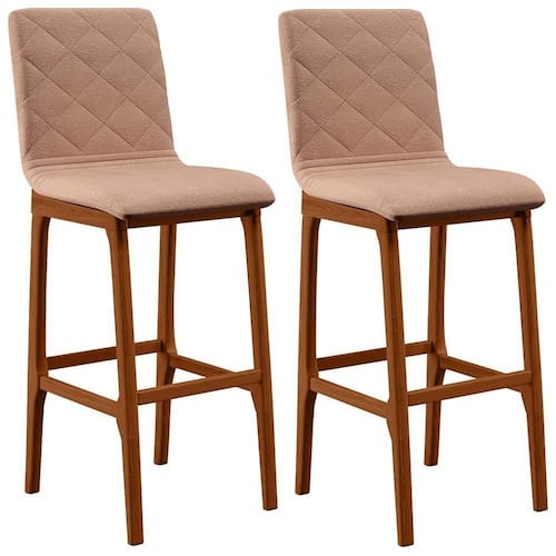 O complemento perfeito para o seu ambiente existe e está aqui! O Kit 02 Banquetas Altas Para Cozinha Sala de Jantar Fixa Zoe B04 Linho Rosê - Lyam Decor vai ampliar totalmente a maneira como você compunha sua decoração, numa pegada clássica, com belíssima estrutura em madeira, na cor nozes, possui assento e encosto estofados super confortáveis e convidativos, além do apoio para os pés que garante maior .