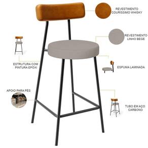 Amplamente moderna, dispondo de muito realce e design singular, o Kit 02 Banquetas Baixa Para Cozinha Sala De Jantar Bar Bancada Milão L02 Couríssimo Whisky Linho Bege - Lyam Decor vem com a personalidade e elegância que sua decoração merece! Estruturada em aço carbono, contrasta lindamente com o encosto e assento estofados, cabe mencionar ainda seu revestimento em Couríssimo, é confeccionada por materiais de excelente qualidade, extremamente resistentes e aconchegantes.