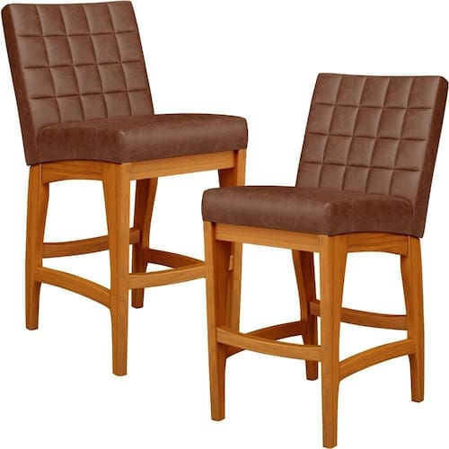 ndo muita excelência, o Kit 02 Banquetas Baixas Para Cozinha Bancada Bar Sala De Jantar 90 cm Fixa Mila L02 Couríssimo Marrom - Lyam Decor é o complemento que faltava para deixar sua casa ainda mais extraordinária. Seu encosto com costura em padrão quadriculado e assento estofados, centralizam em si uma graciosidade estonteante, sem perder todo o seu conforto. A estrutura em madeira, na cor nozes, também é digna de notoriedade, por imprimir bastante personalidade a sua decoração. Vale ressaltar ainda, o apoio para os pés que garante maior segurança à mesma.