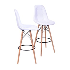Produto: Banqueta Boxbit DKR Eames Acabamento em Botonê Branca Base Madeira