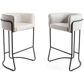 Kit 02 Banquetas Decorativas Betina Base Preto Viscolinho Off White - Nexta Casa