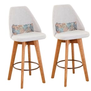 Kit 02 Banquetas Alta Maya Giratória Com Encosto Gourmet Linho Bege E Almofada Folhas - Gat Magazine Banqueta Maya Giratória - GAT MAGAZINE A Banqueta Maya possui assento e pés em madeira eucalipto com sistema giratório! Os pés contam com um reforço que proporciona um suporte de peso de até 120 Kgs.O assento é revestido com espuma D-23. Além de bonita e charmosa, vai trazer para seu ambiente elegância e proporcionará conforto para sua família e amigos nos momentos de lazer.
