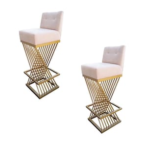 Kit 02 Banquetas Luma Base De Ferro Sued Bege D`classe Decor
