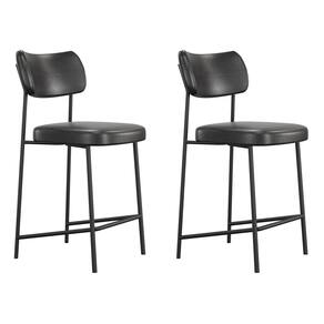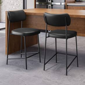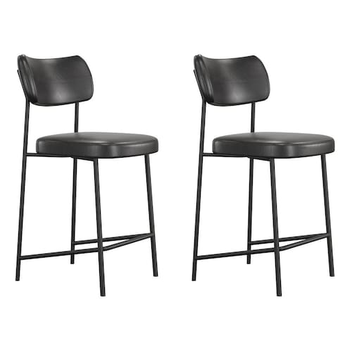 Kit 02 Banquetas Médias Para Cozinha Lila Estofada com Encosto Couríssimo Preto - Abmaza