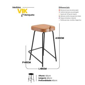Versátil, a Banqueta Vik se adapta facilmente a diferentes estilos de decoração e pode ser utilizada tanto em residências quanto em espaços comerciais.