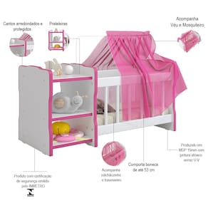 Acompanha colchãozinho, travesseiro e mosquiteiro, para o máximo aconchego da boneca. É produzido com materiais de excelente qualidade, conta com pintura atóxica, bordas arredondadas para maior proteção e possui certificação de segurança emitido pelo INMETRO (Instituto Nacional de Metrologia, Qualidade e Tecnologia). Estimular a imaginação das crianças proporciona uma infância feliz e prazerosa, aproveite e adquira já o seu!