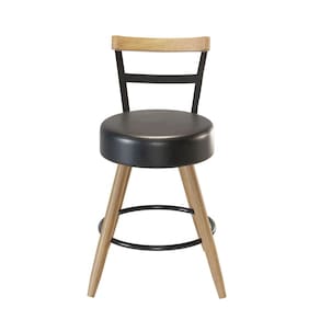 Os pés em eucalipto e o encosto em aço criam um visual que mescla o rústico com o industrial, adaptando-se perfeitamente a diferentes estilos de decoração, como salas de jantar e cozinhas modernas. Com altura de 79cm e design artesanal, cada peça adiciona um toque de personalidade e estilo ao seu espaço.