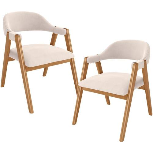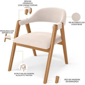 O Kit 02 Cadeiras de Jantar e Estar Living Estofada Nadja, das Lyam Decor, é a escolha perfeita para criar uma sala de jantar moderna e acolhedora. Com seu design curvo e pés de madeira maciça envernizada, essa cadeira estofada traz elegância e sofisticação ao ambiente. Além disso, é tapeçada com espuma d-26, o que proporciona um conforto excepcional, permitindo que você desfrute de momentos incríveis à mesa. Já o design orgânico combina beleza e modernidade, tornando-a uma peça única, enquanto os braços adicionam um toque extra de conforto e estilo.