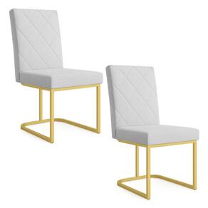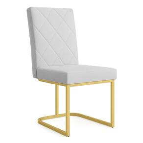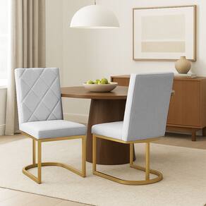 Kit 02 Cadeiras de Jantar Estofada Siena Linho Base de Ferro Dourada - Pallazio - Cinza