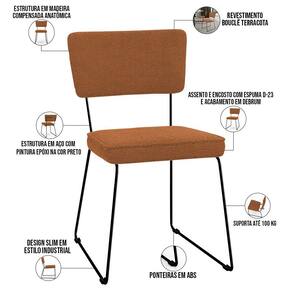 O espetáculo que é a Cadeira Decorativa Estofada Para Sala De Jantar Base Em Aço Allana L02 Bouclê Terracota - Lyam Decor vem para agregar ainda mais valor na decoração da sua casa. Sua estrutura em aço remete-nos ao estilo industrial que surgiu em Nova York no século XX, já o assento e encosto estofados trazem equilíbrio e conforto criando a combinação perfeita para o ambiente. Cabe mencionar também o revestimento em bouclê que possui textura incrível e acabamento impecável.