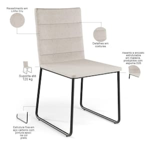 Kit 02 Cadeiras Decorativa Estofada Para Sala De Jantar Preto Maya L02 Linho Cru - Lyam Decor