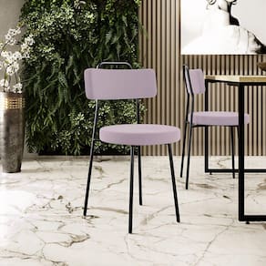 Amplamente moderna, dispondo de muito realce e design singular, o Kit 02 Cadeiras Decorativas Estofadas Para Sala De Jantar Barcelona L02 Suede Rosê - Lyam Decor vem com a personalidade e elegância que sua decoração merece! Estruturada em aço carbono, contrasta lindamente com o encosto e assento estofados, cabe mencionar ainda seu revestimento em Couríssimo, é confeccionada por materiais de excelente qualidade, extremamente resistentes e aconchegantes.