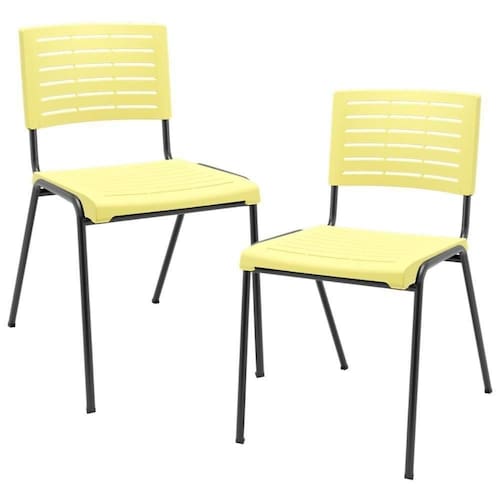 Color: Amarelo | ColorFamily: Amarelo | ColorSimple: Amarelo | ColorSupplier: Amarelo | Com apoio de braços: Não | Com aro para pés: Não | Com rodas: Não | Cor: Amarelo | Formato de venda: Kit 2 unidades | Materiais do aro para pés: na | Material: Termoplástico, Tubos de Aço | Material do estofamento: na | MaterialFamily: Polipropileno | Model: Kimi | Modelo: Kimi | Modelo detalhado: Kimi | OriginCountry: Brasil | OriginState: PR | ProductContents: 02 Cadeiras | ProductHeight: 79 cm | ProductInstructions: Produto para uso em ambiente interno, nao devendo ficar exposto ao sol, calor e umidade excessivos. | ProductLength: 56 cm | ProductWarranty: 90 dias após o recebimento do produto | ProductWeight: 8 kg | ProductWidth: 44 cm | Requer montagem: Não | SizeDescription: Altura: 79 cm x Largura: 44 cm x Profundidade: 56 cm | SupplierSimpleName: Kit 02 Cadeiras Empilhável Fixa Escritório Multiuso Base Preta Kimi P03 Amarelo - Lyam Decor | Tipo de cadeira de escritório: Cadeira Empilhável