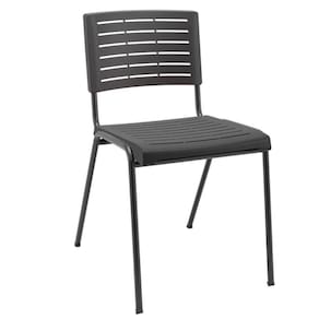Assento e encosto compostos por polipropileno injetado com acabamento texturizado na cor Preto.