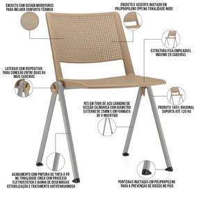 Material do encosto e assento injetado em Polipropileno (PP) na tonalidade Nude.