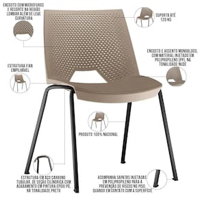 Kit 02 Cadeiras Empilhável Fixa Liked F02 Base Aço Preto Nude - Lyam Decor