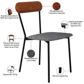 SupplierSimpleName: Kit 02 Cadeiras Estofada Para Sala de Jantar Liora Preto C01 Linho Prata Courino Caramelo - Lyam Dec | Largura do assento: 43 cm | Altura do assento a partir do solo: 49 cm | OriginCountry: | Desenho do tecido: Liso | Tempo de montagem: na | Requer montagem: Não | Material: Estrutura em Aço e MDP, Revestimento em Linho e espuma | Altura da cadeira: 162 cm | Espessura do assento: na | É empilhável: Não | ProductWidth: 43 cm | OriginState: PR | Peso máximo suportado: 120 kg | Largura da cadeira: 43 cm | ProductContents: 02 Cadeiras | SizeDescription: Altura: 162 cm x Largura: 43 cm x Profundidade: 53 cm | ProductWeight: 5,5 kg | É dobrável: Não | Cor: Caramelo | Color: Caramelo | ColorFamily: Caramelo | ColorSimple: Caramelo | ColorSupplier: Caramelo | Cor do estofamento: PrataCaramelo | Fabricante: Lyam Decor | MaterialFamily: Aço, MDP, Linho e espuma | Model: Liora | ProductLength: 53 cm | ProductWarranty: 90 dias após o do produto | ProductHeight: 162 cm | ProductInstructions: Produto para uso em ambiente interno, nao devendo ficar exposto ao sol, calor e umidade excessivos. | Cor da estrutura da cadeira: Preto | Cor do assento: Caramelo | É cadeira de balanço: Não | Material do estofamento: Espuma D-22 e D-28 | Profundidade da cadeira: 53 cm | Profundidade do assento: 53 cm | Firmeza: Firme