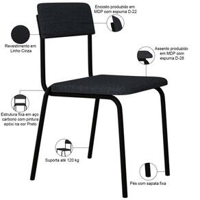 Fabricante: Lyam Decor | OriginCountry: Brasil | Firmeza: Firme | É cadeira de balanço: Não | Altura da cadeira: 81 cm | Altura do assento a partir do solo: 47,5 cm | Color: Cinza | Peso máximo suportado: 120 kg | ColorFamily: Cinza | É empilhável: Não | Requer montagem: Não | Tempo de montagem: na | ColorSupplier: Cinza | Material: Estrutura em Aço e MDP, Revestimento em Linho | ProductLength: 51 cm | Cor: Cinza | ProductHeight: 162 cm | ColorSimple: Cinza | Cor do estofamento: Cinza | Profundidade do assento: 40 cm | MaterialFamily: Aço, MDP e Linho | Model: Sense | Largura do assento: NA | OriginState: PR | ProductContents: 02 Cadeiras | Largura da cadeira: 47,5 cm | SizeDescription: Altura: 162 cm x Largura: 48 cm x Profundidade: 51 cm | SupplierSimpleName: Kit 02 Cadeiras Estofada Para Sala de Jantar Sense Preto C01 Linho Cinza - Lyam Decor | ProductWidth: 48 cm | ProductWarranty: 90 dias após o recebimento do produto | ProductInstructions: Produto para uso em ambiente interno, nao devendo ficar exposto ao sol, calor e umidade excessivos. | ProductWeight: 11,5 kg | Desenho do tecido: Liso | Cor da estrutura da cadeira: Preto | Cor do assento: Cinza | Material do estofamento: Aço, MDP e Linho | Profundidade da cadeira: 51 cm | Espessura do assento: na | É dobrável: Não