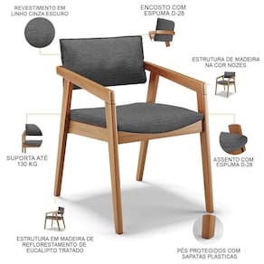 Kit 02 Cadeiras Para Sala De Jantar Estar Living Giorgia B04 Linho Cinza Escuro - Lyam Decor