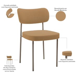Kit 02 Cadeiras Para Sala De Jantar Melina Base Arena L02 Bouclê Mostarda - Lyam Decor
