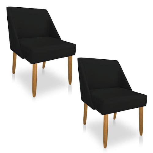 Kit 02 Cadeiras Poltona Juliana Suede Preto Pés Palito Castanho - Pallazio