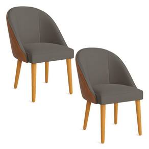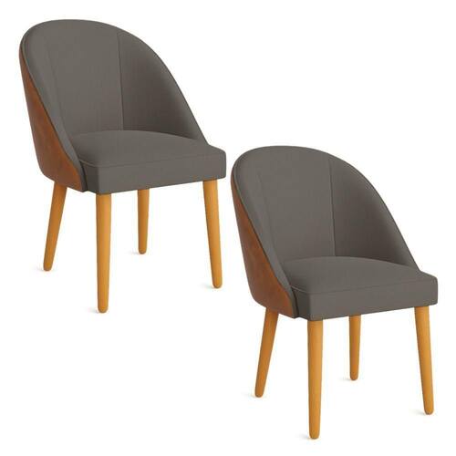 Kit 02 Cadeiras Poltrona De Jantar Bela Corano Nozes E Linho Grafite Pés Palito Castanho - Pallazio - Cinza