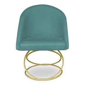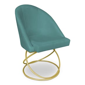 Kit 02 Cadeiras Poltrona de Jantar Bela Suede Azul Turquesa Base Metálica Luxo Dourado - Pallazio