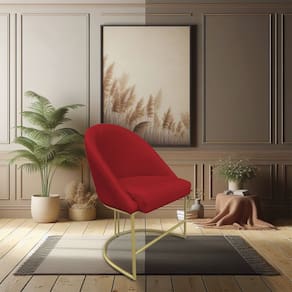 Kit 02 Cadeiras Poltrona de Jantar Bela Suede Vermelho Base Metálica Industrial Dourado - Pallazio