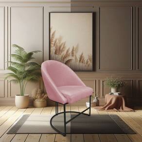 Kit 02 Cadeiras Poltrona de Jantar Bela Veludo Rosê Base Metálica Industrial Preto - Pallazio