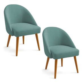 Kit 02 Cadeiras Poltrona de Jantar Estofada Luna Boucle Azul Majestic Pés Palito Castanho - Pallazio