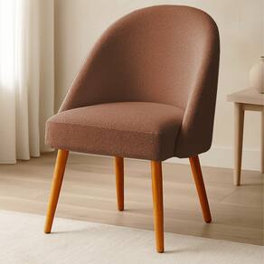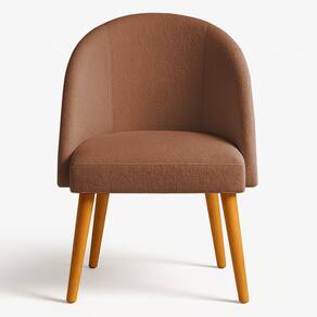 Kit 02 Cadeiras Poltrona de Jantar Estofada Luna Boucle Pés Palito Castanho - Pallazio - Marrom