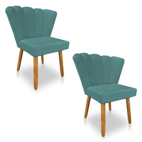 Kit 02 Cadeiras Poltrona Flor Veludo Azul Turuqesa Pés Palito Castanho - Pallazio