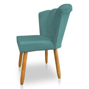 Kit 02 Cadeiras Poltrona Flor Veludo Azul Turuqesa Pés Palito Castanho - Blush