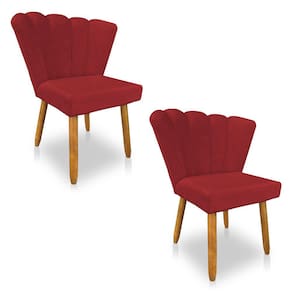 Kit 02 Cadeiras Poltrona Flor Veludo Vermelho Pés Palito Castanho - Pallazio