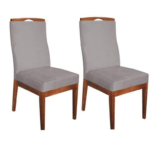Conjunto 02 Cadeiras Para Sala De Jantar Ricco Estofada Madeira Carvalho Veludo Cinza Claro - Ahazzo Móveis Cor Cinza