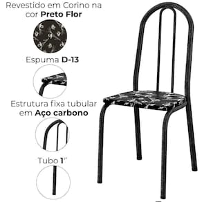 Cor: Multicolorido | Tonalidade: Multicolorido | Altura: 98 cm | Largura: 33 cm | Peso do produto: 10 | Cômodo indicado: Cozinhas | Material da estrutura: Aço | Produto: Cadeira Tubular | Altura da cadeira: 98 cm | Largura do assento: 33 cm | Profundidade do assento: 46 cm | Requer montagem: Não | Inclui Manual de montagem: Sim | Quantidade de caddeiras por conjunto: 2 | Cor: Preto Flor