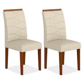 Detalhes Técnicos das Cadeiras -Assento e Encosto Tapeçados, Estofados e Fixos -Peso Suportado da Cadeira: 90 KG -Facilidade da Montagem: Média -Tonalidade da Cadeira: Cinamomo/Suede Bege -Espuma do Assento: D16 -Espuma do Encosto: D14 -Tipo de Pintura: UV Texturizada -Material: Estrutura em MDF / Pés e Espaldar Madeira -Medida da Cadeira: 100CMx44CMx50CM