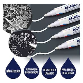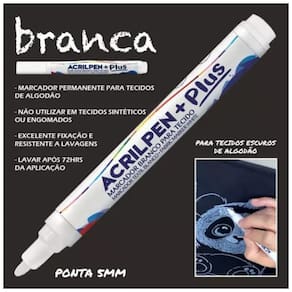 Acrilpen + Plus marcador branco para pintar e marcar tecidos permanentemente.